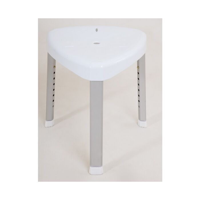 Driehoek Douchekruk Orthocor - Handige driehoek douchekruk gemaakt van stevige aluminium buizen. Makkelijk in een hoek te plaatsen voor meer beenruimte. Het ontwerp van de zitting zorgt voor een stabiele en comfortabele positie met een goede afvoer van het water op de zitting. Rubber doppen voorkomen het schuiven van de kruk.