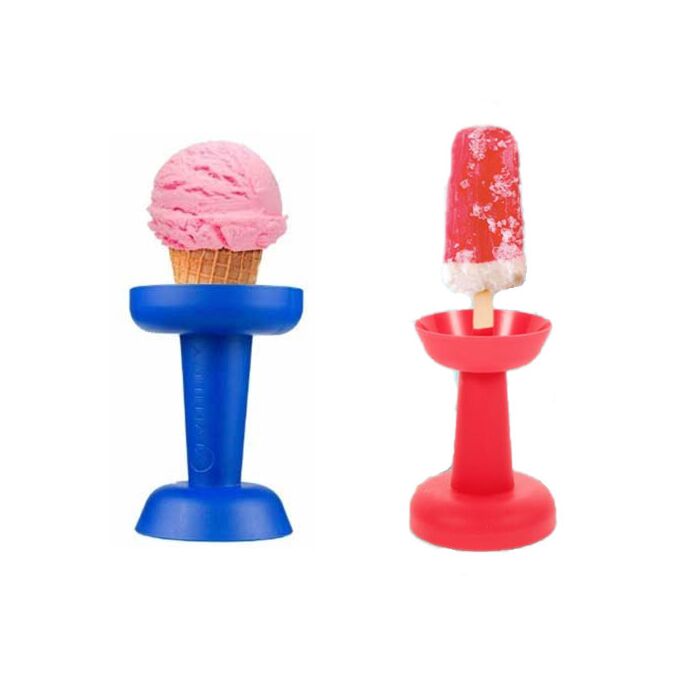 Eén kant is geschikt voor hoorntjes en de andere kant van de ijsjeshouder is voor ijsjes met platte stokjes.